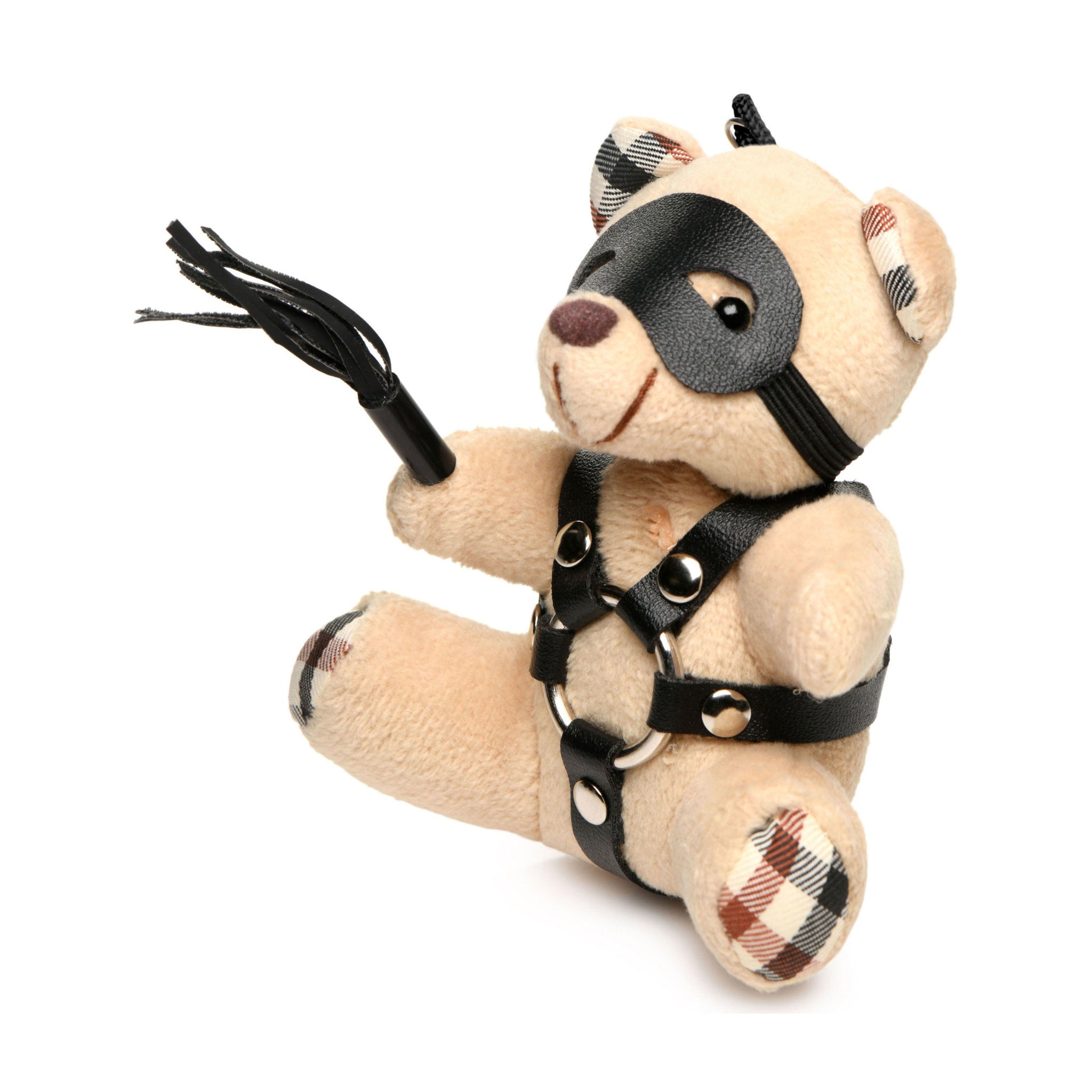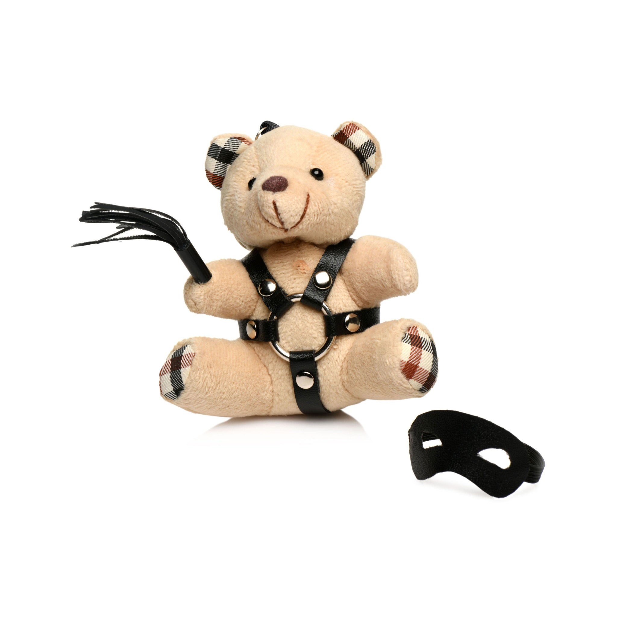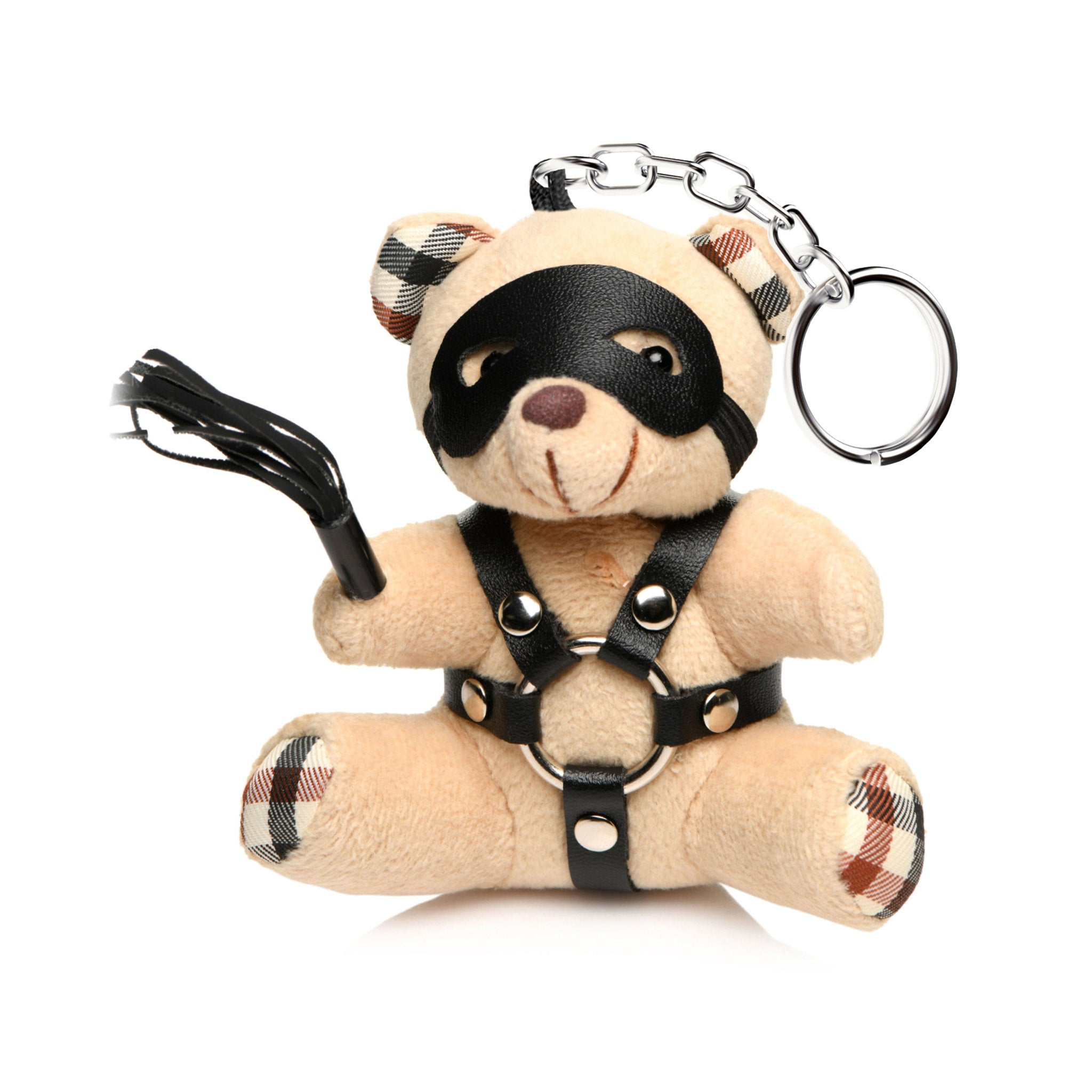 Our Master Series BDSM Teddy Bear Keychain is perfect as a gift or for yourself and lets you flag your kinky side in the cutest of ways! This bear has light peach fur, wears a faux leather harness with metal O-rings, wields a mini flogger, and has a removable eye mask! Wear it on your bag, attach it to your keychain, or hang it somewhere for fun! It fits in the palm of your hand. Bring it to your desk at work and let this controlling keychain keep you in check so you get all your work done! Attach it to your keychain or clip it to a bag!
