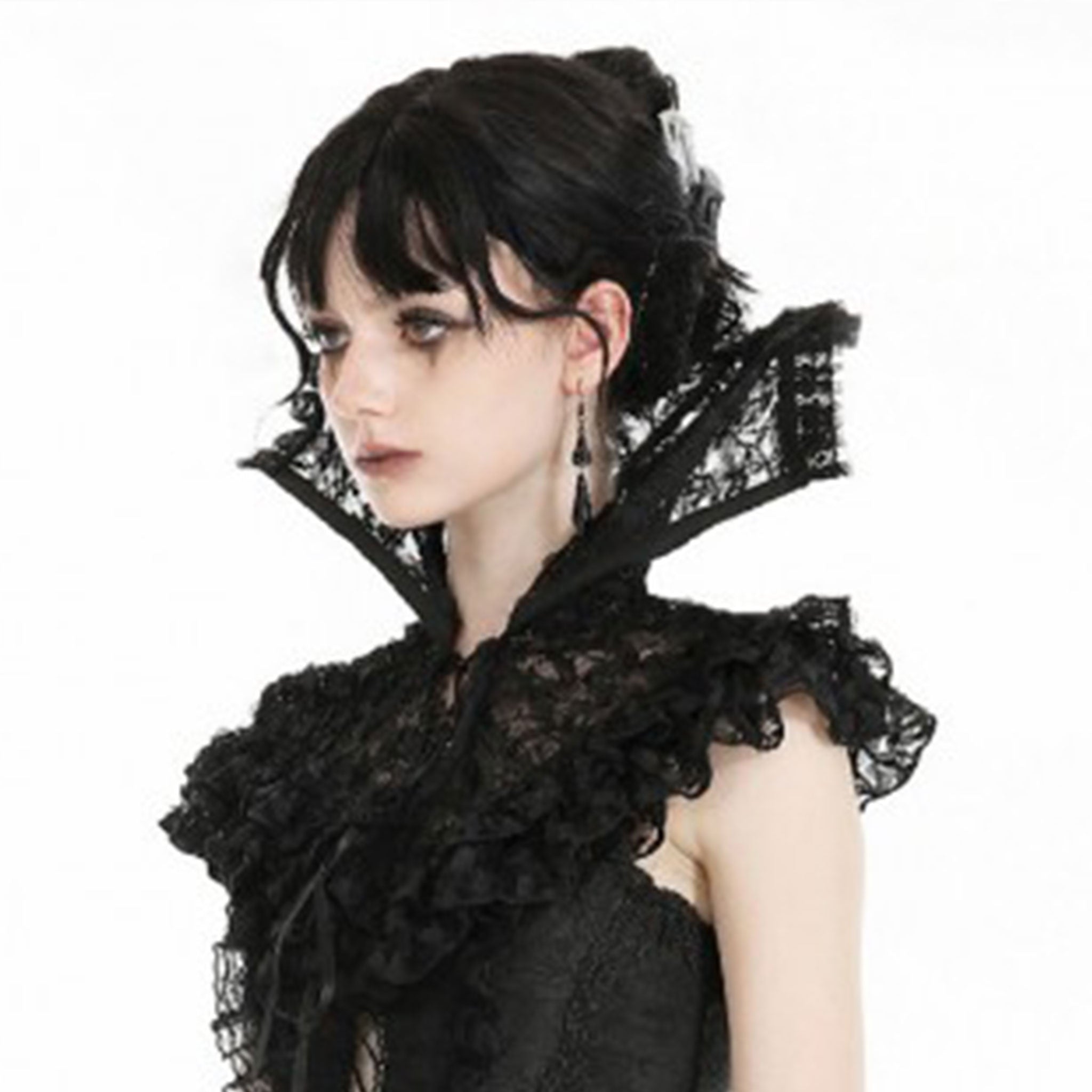 Turn heads and claim your throne with our Lace Stand-up Evil Queen Collar Capelet. This dramatic lace piece wraps you in gothic elegance with its intricate detailing and commanding ruffled stand-up collar. Bow down, darlings—the queen has arrived.