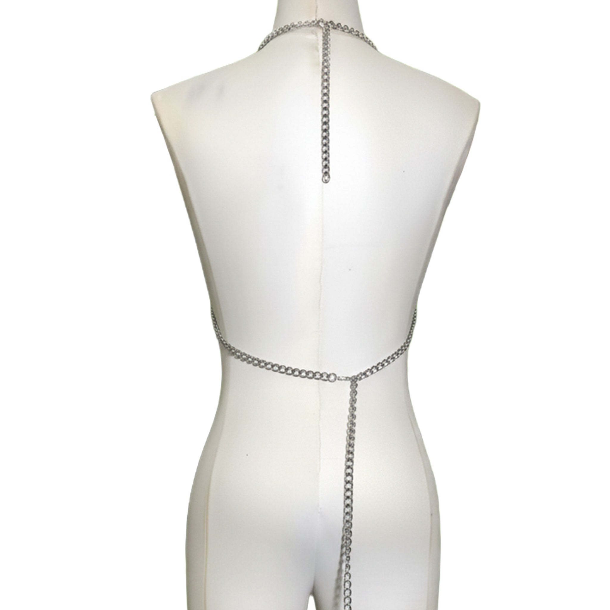 Crafted from interconnected Cuban links blended with strands of cable chain, our Mixed Chain Halter Top delivers an edgy, avant-garde aesthetic with undeniable presence. The halter neckline provides secure support while the fluid drape of blended chains creates striking visual movement. Perfect for statement-making occasions, performances, or fashion-forward styling, this piece combines architectural precision with bold attitude. The metallic finish catches light beautifully, ensuring you command attention and the adjustable lobster-clasp closure behind the neck makes it easy to wear.