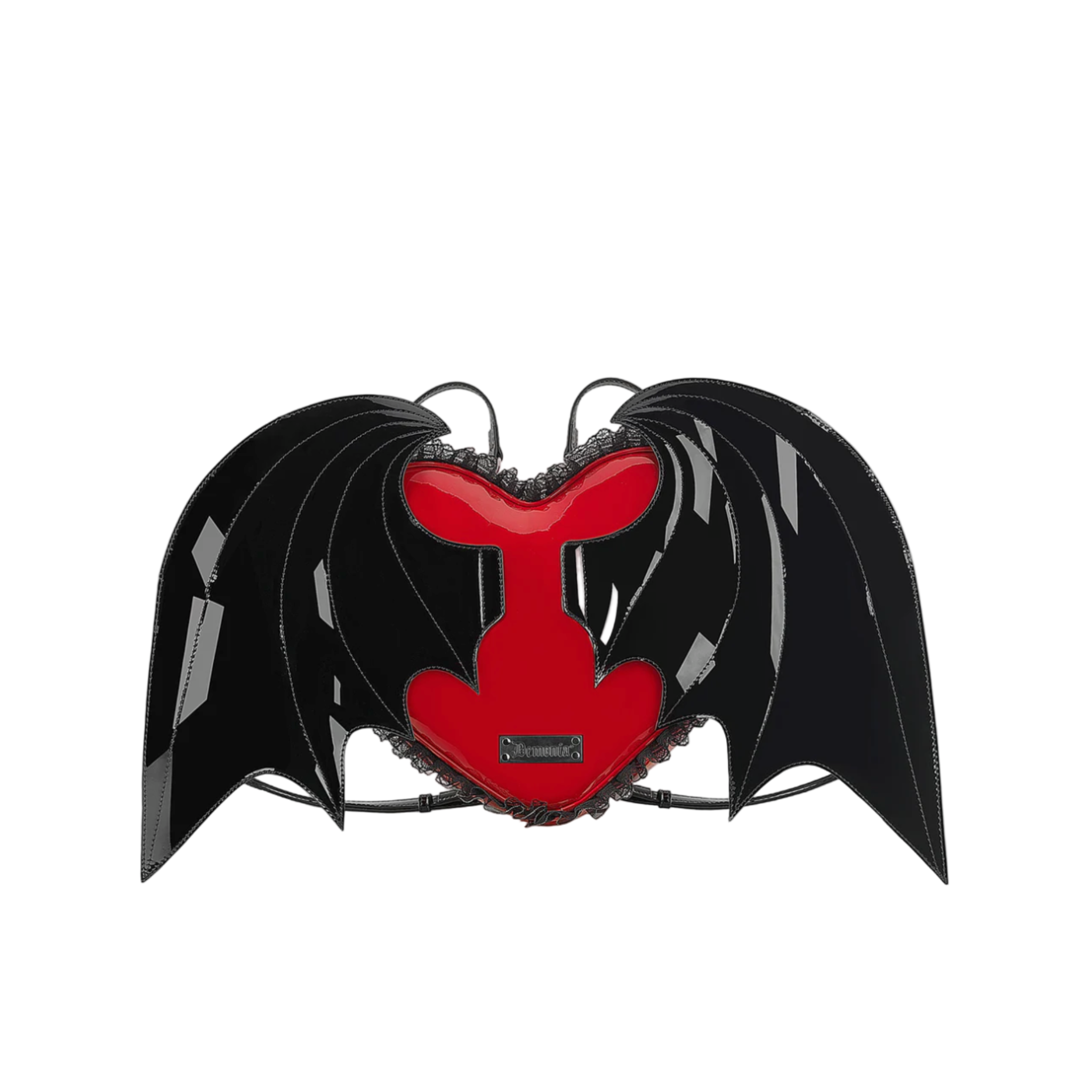 Sweet yet sinister, our Bat Wing Backpack Black & Red Patent steals the spotlight. With a glossy heart-shaped body, quilted contrast bat wings, and ruffle lace trim, it’s the ultimate mix of darkly cute and dangerously bold.