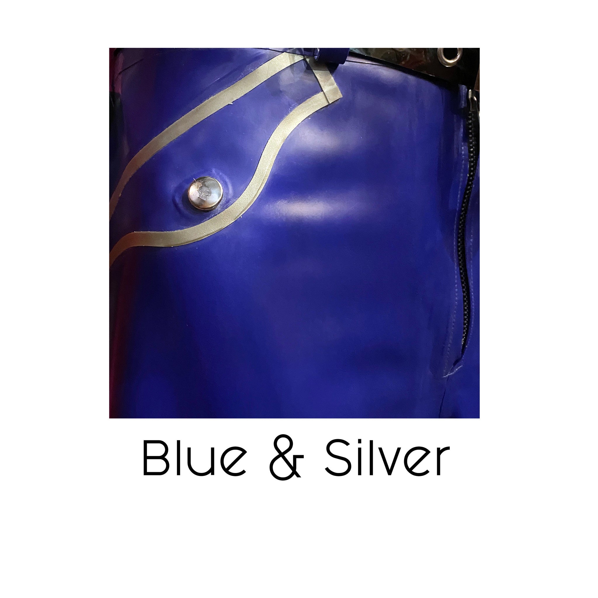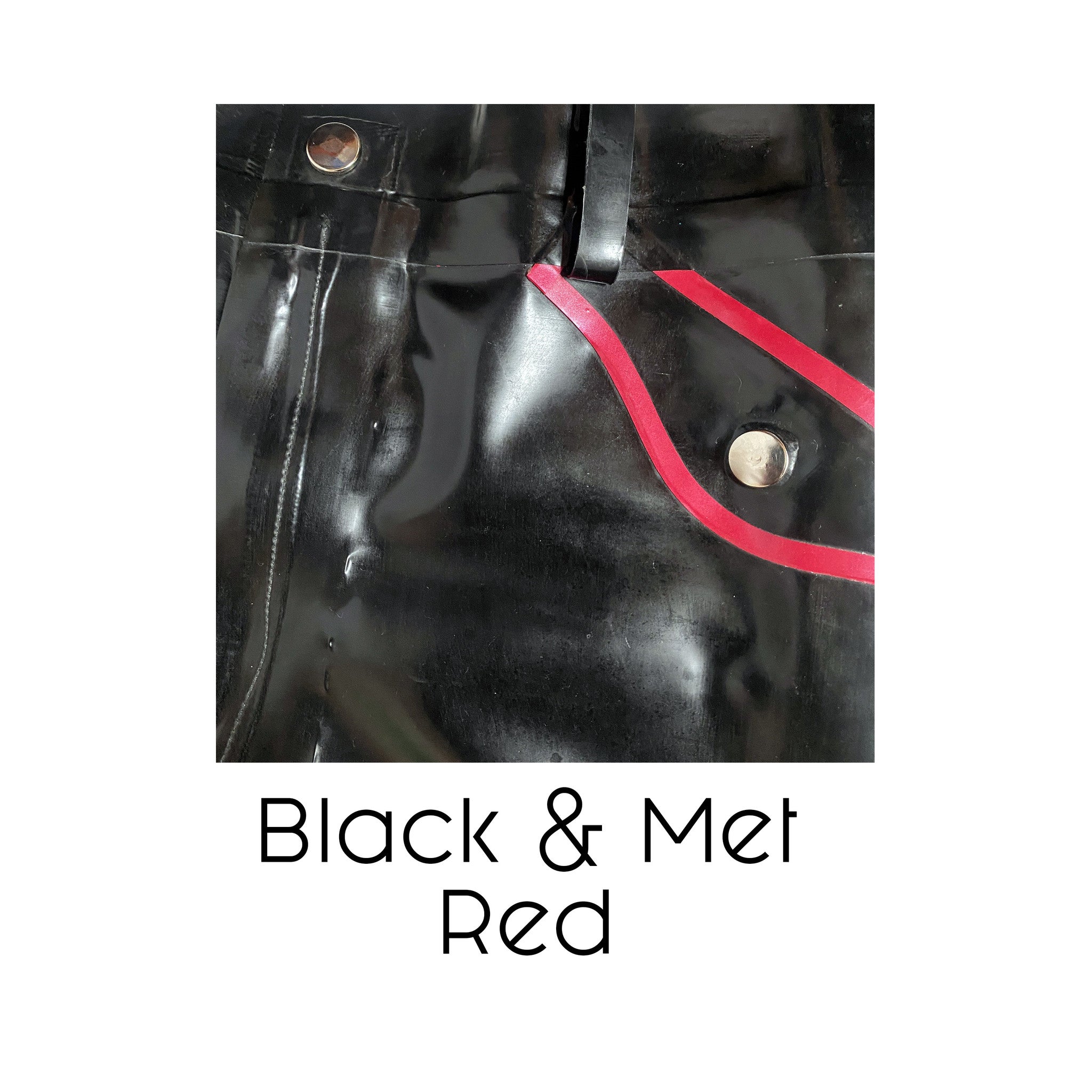 MATERIAL: 100% latex (@ 0.45mm thickness) with metallic hardware and accents