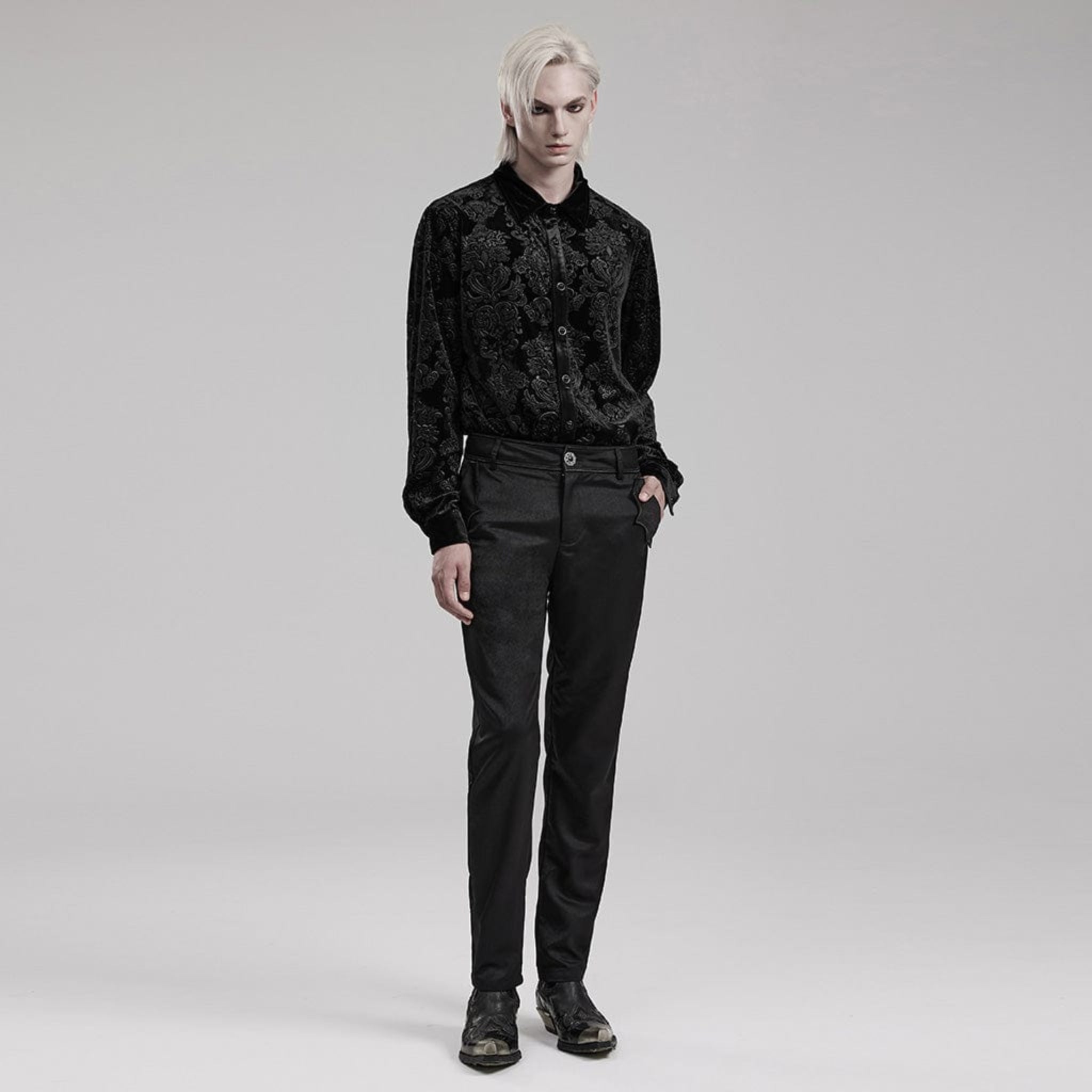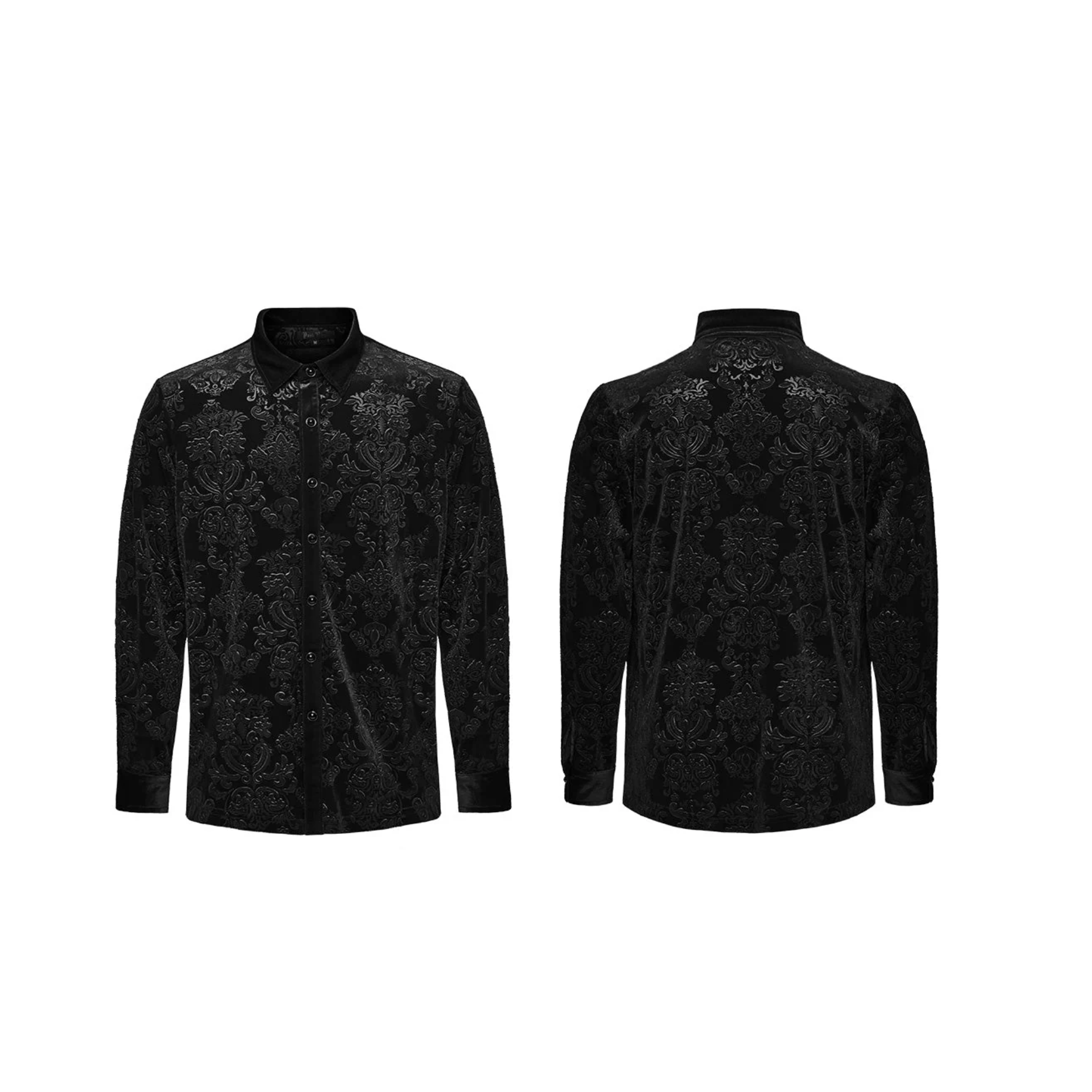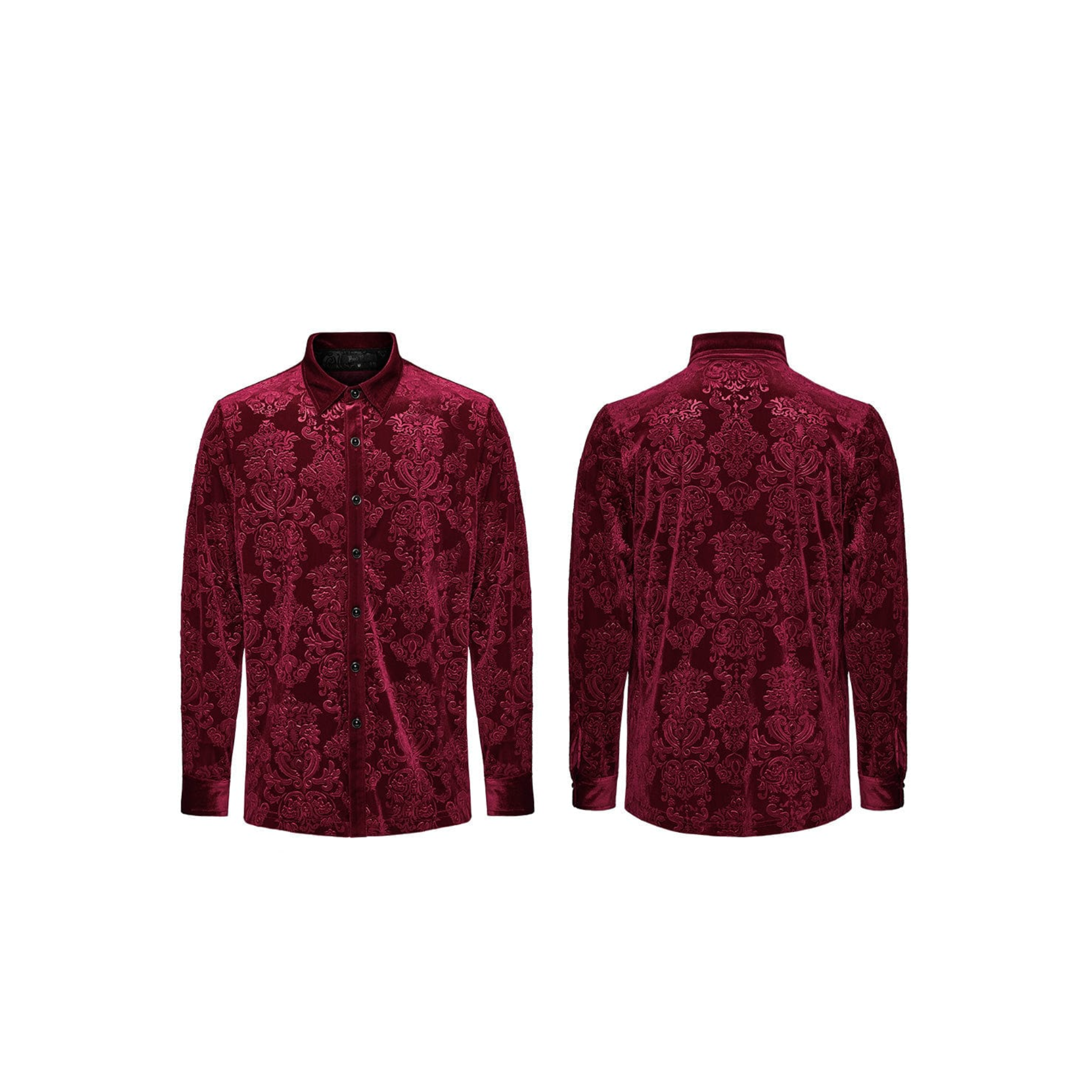 Command attention in our embossed velveteen gothic shirt, crafted with luxurious texture and detailed patterns that set a darkly elegant tone. Finished with ornate front buttons, this piece is perfect for making a bold gothic or Victorian-inspired statement.